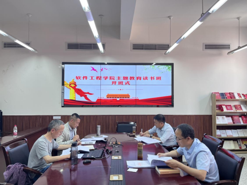 【本网讯】4月18日下午,软件工程学院党委在信达楼B505会议室举行学院学习贯彻习近平新时代中国特色社会主义思想主题教育读书班开班式。党委书记马义华主持开班式并作第一次集体学习领学,学院全体领导班子成员参加开班式,学院非处级党委委员列席开班式。