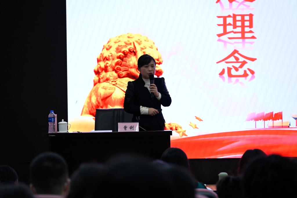 开班仪式后,马克思主义学院曾利副教授为我校“青马工程”第十四期大学生新生骨干班全体学员讲授课堂第一讲《新发展理念——创新》。