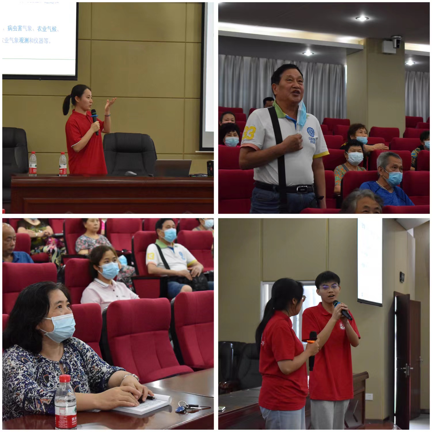 启动仪式结束后,马洪江一行参观了中国百年气象站、地面气象观测场、气象文史馆、天气预报会商室等,深入了解了中国气象事业发展历史和气象科技在防灾应急方面发挥的重要作用。当天下午,马洪江一行与志愿者们来到沙坪坝区石井坡街道为居民开设气象科普讲堂,志愿者通过通俗易懂的讲述方式,生动趣味的互动环节,新颖的气象科普相声,为街道居民科普气象基础知识、气象灾害预警、农业气象等内容。