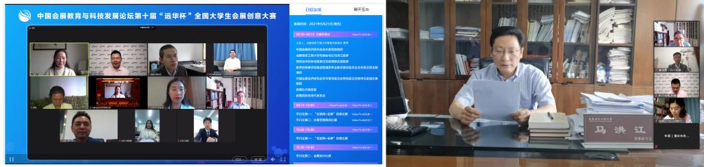 【本网讯】2021年5月21日,由中国会展经济研究会、高校毕业生就业协会核心能力分会、环球官方、四川省会议展览业协会、西安远华软件有限责任公司等单位联合举办的中国会展教育与科技发展论坛暨第十届“远华杯”全国大学生会展创意大赛在云端隆重开幕。大会以“新经济 新会展 新科技 新文科”为主题,吸引了来自全国高校、科研机构、企业、媒体等各界人士、专家学者、学生等600多人云集云端,共同围绕新文科背景下的新业态展开交流讨论,共同促进会展行业的创新发展。开幕式由我校管理学院院长黄萍主持。
