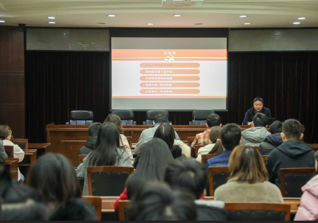舒红平围绕十九届五中全会的主要背景、指导思想和主要目标,对我国发展环境面临的国际、国内机遇与挑战,2035远景目标,“十四五”时期经济社会发展主要目标,实现奋斗目标的具体举措等方面作了全方位的讲解和阐述。他重点强调,要准确把握我国发展的主要目标,科技是第一生产力、驱动力、原动力,是实现目标的关键要素。