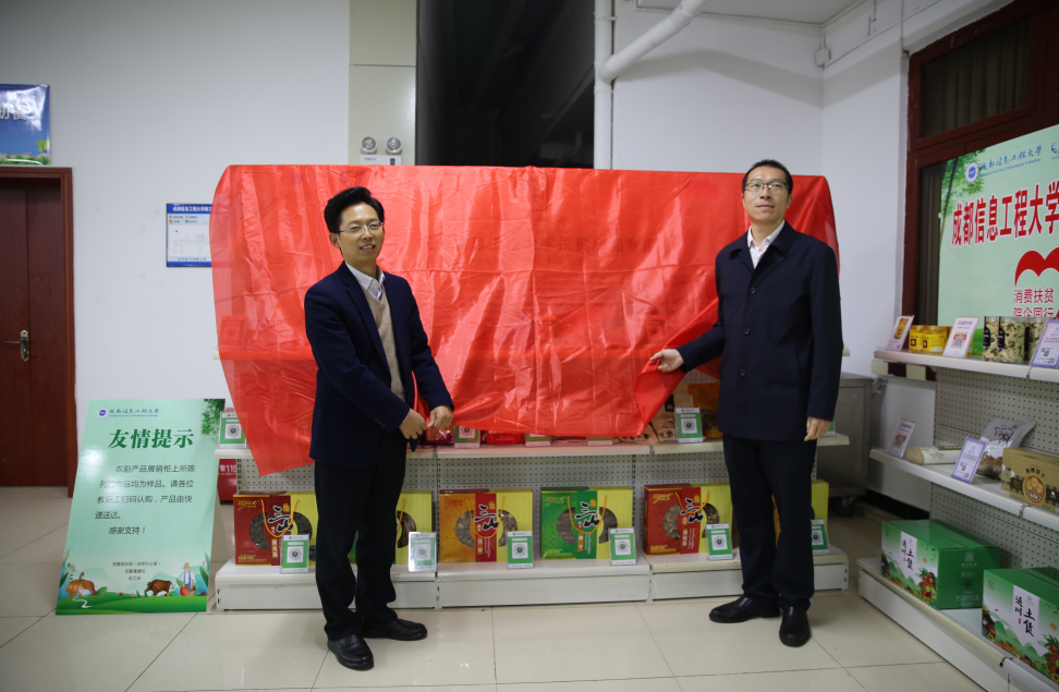 肖月强、熊建为我校首个“扶贫产品专柜”进行揭牌,宣布“专柜”正式营业。肖月强表示,此次设立“扶贫产品专柜”是支持贫困地区振兴的一项重要举措,是全校师生面向乡镇困难群体帮扶助困的一项爱心工程。“扶贫产品专柜”的成立将贫困地区乡民与全校师生紧紧连接在一起,为全校师生搭建了扶贫帮困的新平台,学校将竭力把“扶贫产品专柜”建设好、运作好、管理好,最大限度地发挥其利民惠民和扶贫帮困的效益。