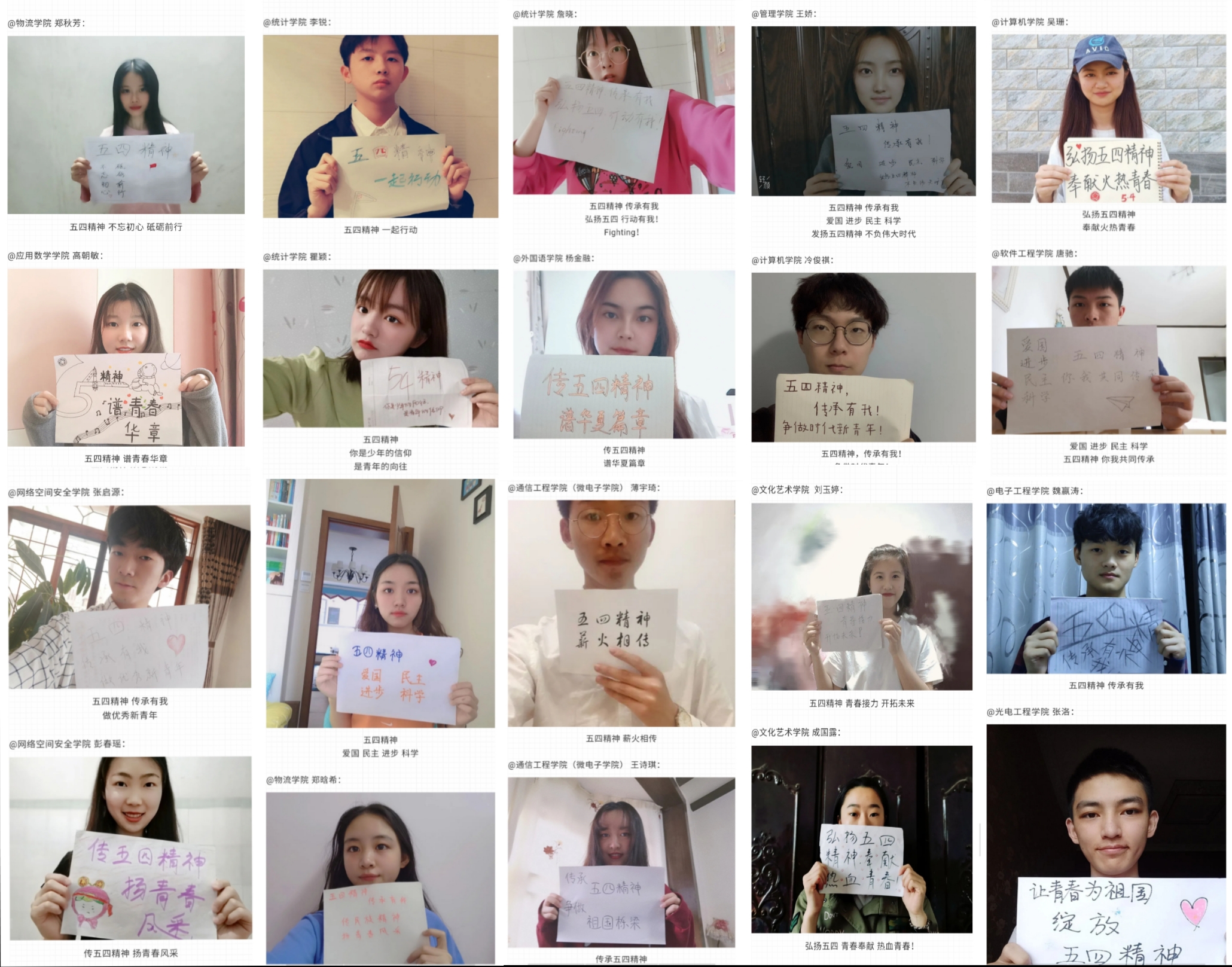 5月4日,共青团中央通过微博、微信、B站、快手、抖音、斗鱼、今日头条等各大网络平台@共青团中央 账号以及学习强国平台同步举办“让青春为祖国绽放”网上主题团日活动。活动以学习宣传贯彻习近平总书记关于青年工作的重要思想为主线,按照“出彩青春”“战疫青春”“奋斗青春”“绽放青春”4个篇章,先后开展了第24届“中国青年五四奖章”获得者风采展示、青春故事分享会、团团直播间访谈、五四网上主题团课、优秀文化产品展播等活动,集中讲述广大青年踊跃投身疫情防控、复工复产的生动故事,集中展示新时代中国青年爱国担当、奋发向上的精神风貌。校团委积极做好活动的宣传和组织发动,广泛动员全体团员青年和团干部认真收看、积极参与网上主题团日活动,参与学生达20000人次。各学院团委组织依托新媒体平台集中开展“五四精神·传承有我”“同舟共济·青春偕进”等网络话题活动,在网上形成了传承五四精神、共话青春责任的热潮。