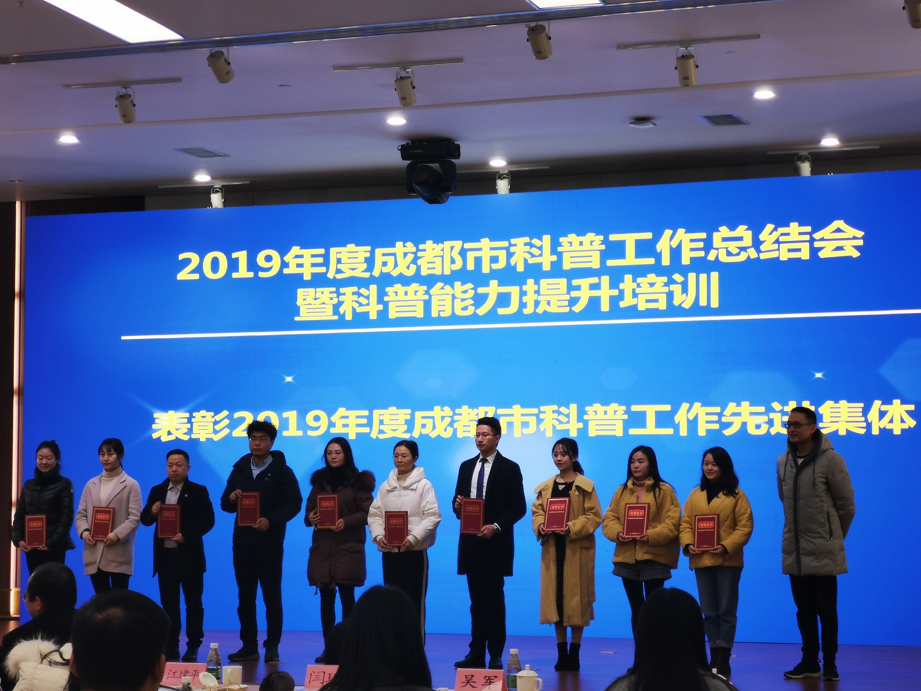 【】12月19日,成都市2019年度科普工作总结会暨科普能力提升培训会在四川大学灾后重建与管理学院召开,成都市科普基地、成都市科普教育基地联合会成员单位代表及各区(市)县代表200余人参加了会议。我校控制工程学院教师黄小燕等科普工作者作为代表参加会议。