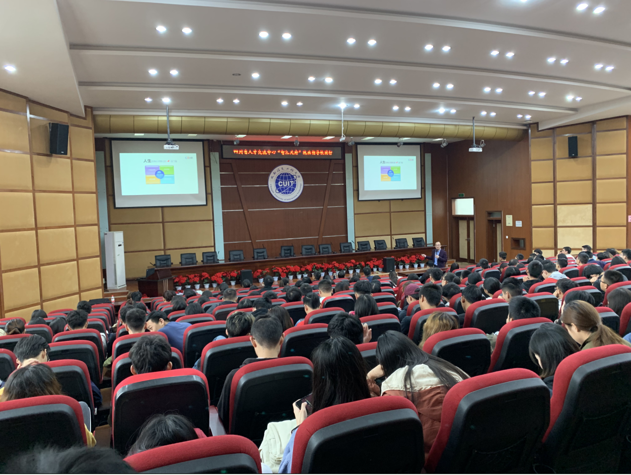 国家一级人力资源管理师周晓冬老师应邀围绕“选择你的未来——就业三把刷子”主题,旁征博引,借用西游记角色,从认清就业形势,应对就业困难;八类角色认知,定位职业角色;熟悉面试技巧,做好充分准备等解读职业生涯规划和就业的关系,激励学生认真学习,正确认识自己,科学规划人生。
