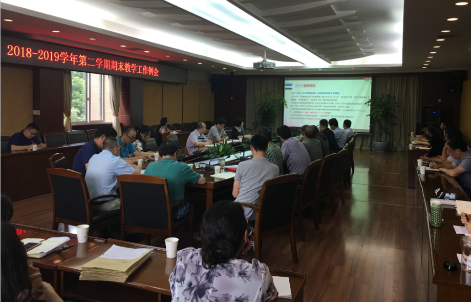 【本网讯】6月18日下午,学校在航空港校区第七会议室召开2018-2019学年第二学期期末教学工作例会,副校长何建新,各教学单位主管教学工作负责人、教务办主任、教学秘书,教务处负责人等参加了会议。会议由教务处处长方睿主持。
