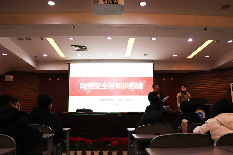 讲座由学院党总支书记张仕斌主持,特邀了中国信息安全测评(四川)中心副主任兼四川省信息安全行业协会副会王丹琛博士作为主讲人,18级-16级信息安全专业学生认真聆听了本次讲座。