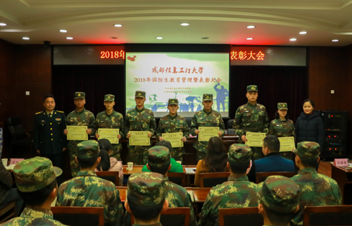 会上,戴丽红宣读了《关于表彰2018年度军政训练先进单位和个人的通报》和《关于表彰2018年国防教育暨国防生活动月先进单位和个人的通报》,与会领导和老师为获奖的集体和个人颁发了荣誉证书。