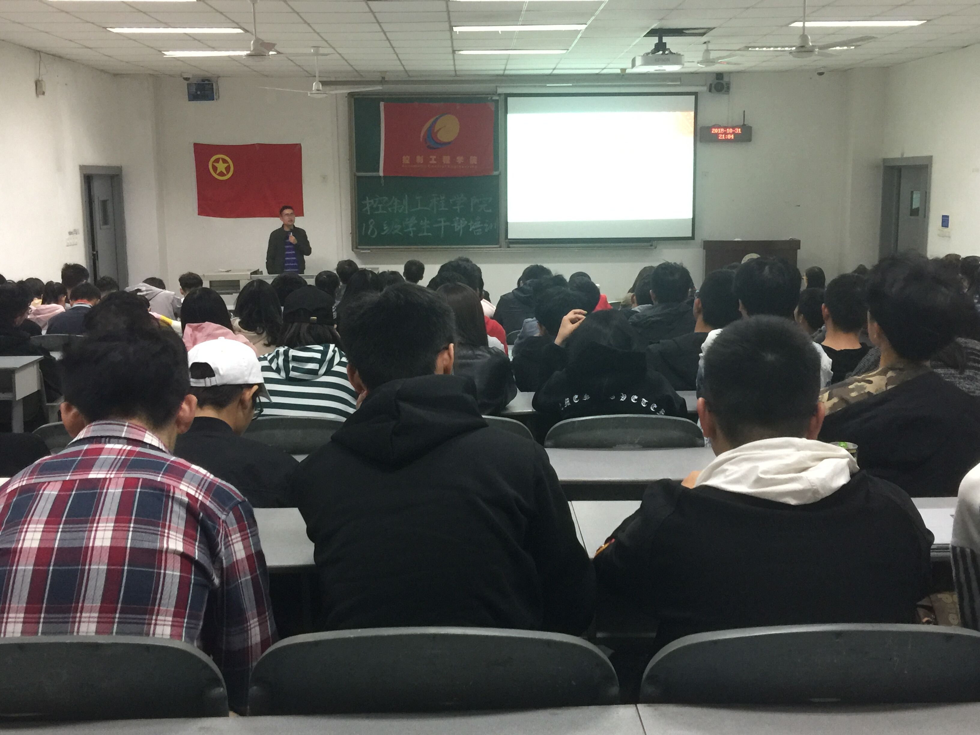10月31日晚上,党总支副书记张勇在1302教室组织召开了控制工程学院全体学生干部会议,传达了习近平总书记在全国教育工作大会上的讲话精神。