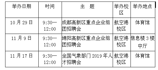 为更好的搭建就业平台,促进毕业生充分、高质量就业,学校近期还将承办多场政府组团招聘会,具体安排见附表。请广大毕业生及时关注相关信息,认真对待,积极参与。