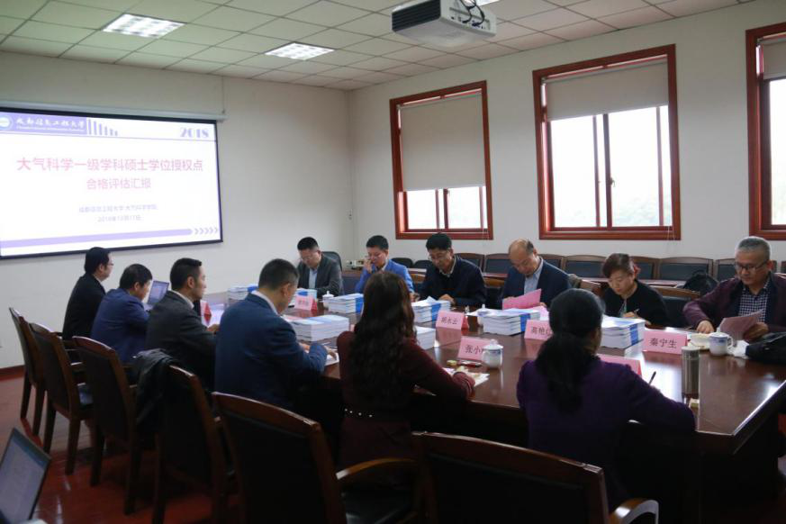 【本网讯】10月17日,我校大气科学和农业硕士(资源利用与植物保护)学位授权点自评估专家评议会在学校航空港校区大气科学学院会议室举行。参加本次学位授权点评估会议的专家有北京大学物理学院副院长胡永云教授、兰州大学大气科学学院院长田文寿教授、中国科学院西北生态环境资源研究院高原大气物理研究室副主任高艳红研究员、浙江大学地球科学学院副院长曹龙教授、中山大学大气科学学院副院长黎伟标教授、四川省气象局气候中心副主任秦宁生正研级高级工程师。会议由我校研究生处处长陈权亮主持。