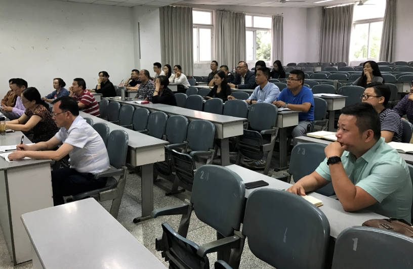 陶若铭深入分析和解读了9月10日“习近平总书记在全国教育大会上的讲话”的精神和9月7日“四川省委书记彭清华为在蓉高校师生作的形势与政策报告会”的精神。他希望老师们立足于党的十九大报告精神,用习近平新时代中国特色社会主义思想武装头脑,结合最新思想和最新动态,特别是在治蜀兴川时代号角中,坚持立德树人,课程育人,努力提高教学水平。