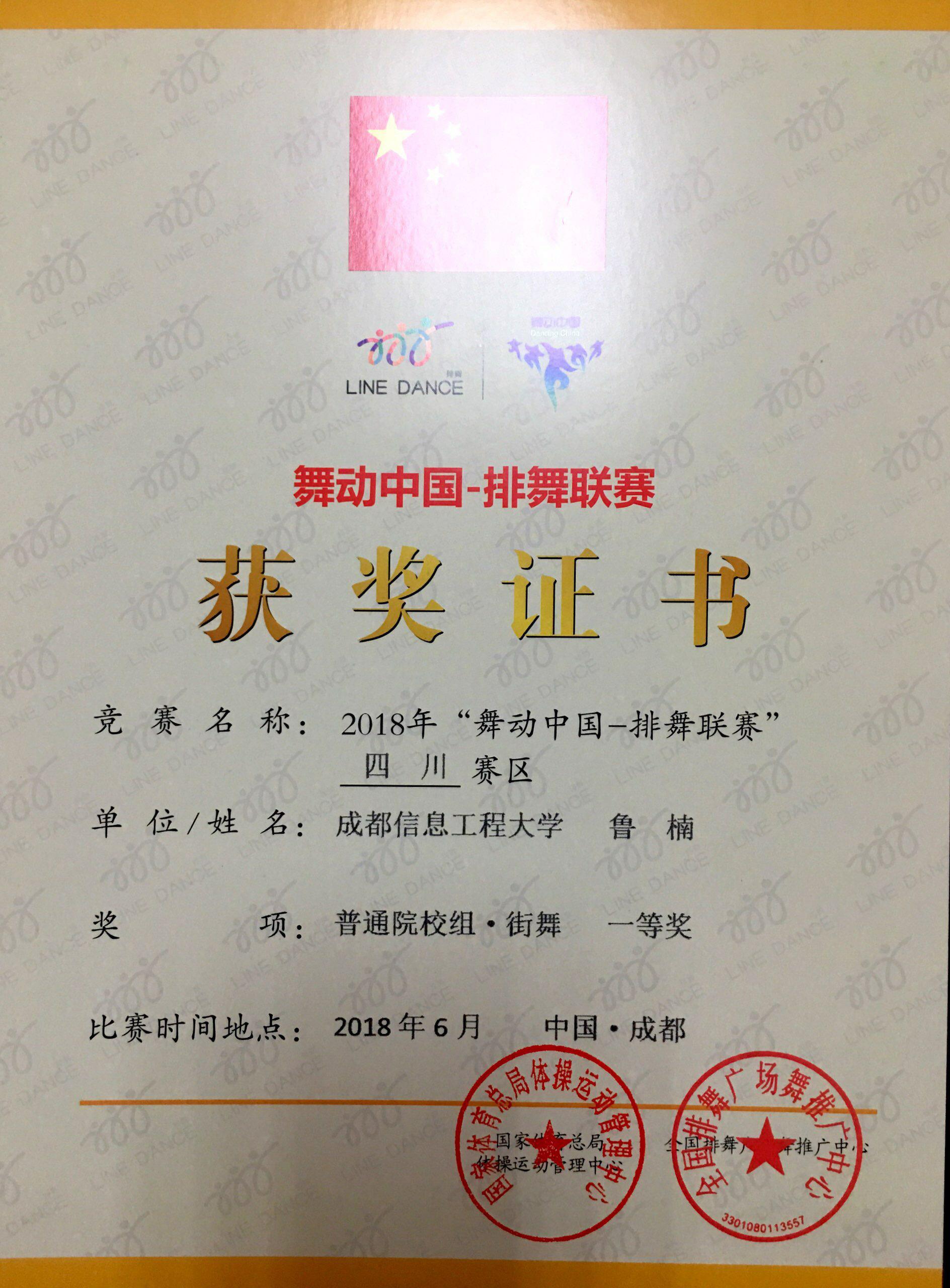 此次比赛共有来自全省各地市州的90个单位149支代表队,共2500余名运动员参赛。经过激烈角逐,我校大学生艺术团DC街舞队通过优异的表现、精湛的表演,凭借舞蹈作品《舞动成信》,荣获“2018年舞动中国-排舞联赛 (四川赛区)暨第三届四川省学生排舞比赛”普通院校组街舞自编项目的一等奖。