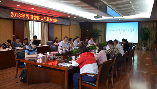 【本网讯】为了突出人工智能技术与天气预报业务的学科交叉融合,致力于推进我国西南区域天气预报技术创新和应用创新。由中国气象局-环球官方气象软件工程联合研究中心主办,我校软件工程学院承办的“2018西南智能天气预报论坛”于4月23日在行政楼第七会议室召开。西南区域各气象台领导及业务骨干,我校软件工程学院、大气科学学院教师代表参加了本次会议。此外,广东、广西、黑龙江、宁夏等气象台领导及相关人员、北京师范大学相关领域代表也受邀到会。会议由大气科学学院教授胡文东主持。