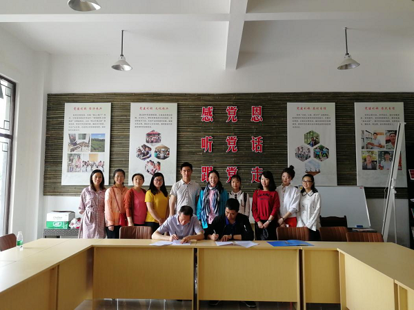 座谈会上,学院与明月村达成了合作意向,进行了研究生科研实习基地挂牌签约仪式。