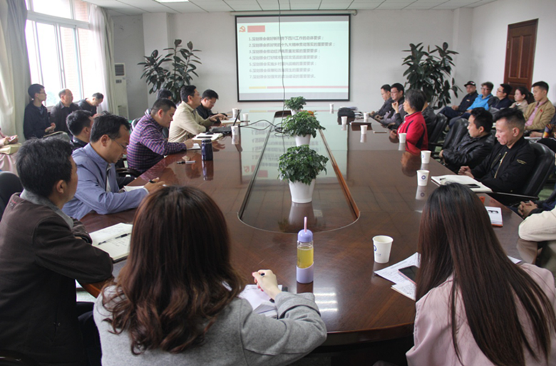 【本网讯】3月23日上午,学校副校长马洪江在行政楼第九会议室为后勤党总支作习近平总书记来川视察重要讲话精神专题宣讲。宣讲会由后勤党总支书记李林襁主持,后勤党总支全体党员、入党积极分子及部分教职工参加了专题学习。