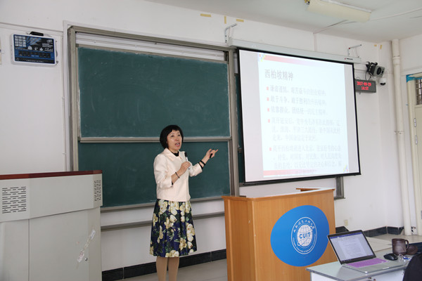 学院副院长李贵卿为全体教职工作了题为《延安精神 永放光芒》的专题报告。李贵卿为全体教职工详细解读了自共产党诞生以来的中华民族精神,包括了井冈山精神、长征精神、延安精神、西柏坡精神、雷锋精神、“两弹一星”精神、抗洪精神、载人航天精神、抗击非典精神、抗震救灾精神等,阐释了原生态的延安精神来源。她说,学习延安精神,理解和掌握我党历经险阻、带领全国人民走向革命胜利的精神武器,并把它传给我们的接班人,从而使其发扬光大,是我们肩负的重任;对于高校教师而言,就是要立德树人、勇于担当、无私奉献。