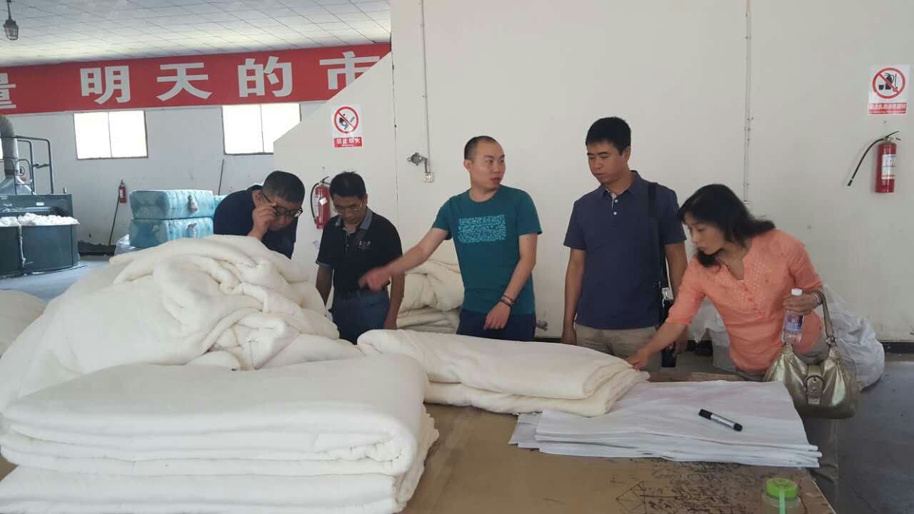 新增投标商为四川省三台新川棉花有限责任公司、广汉市顺意棉业有限公司、四川鑫奥棉织品有限公司、四川成都星思宇家纺有限公司。考察组通过现场调研厂家的生产规模、厂房面积、机器设备、原材料来源以及车间工作现场等情况,实地了解了床上用品的品质和工艺,并仔细进行了分析比对。