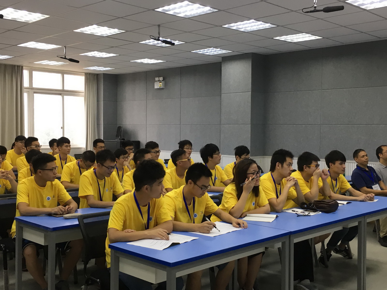 【本网讯】7月18日上午,环球官方控制工程学院暑期国际教育周在1402教室开始授课。控制工程学院副院长蒋涛教授,测控教研室蒋世奇教授,自动化教研室付克昌副教授,出席了此次活动。学院14级36名学生身着统一的服装,精神饱满地期待李耀老师授课。
