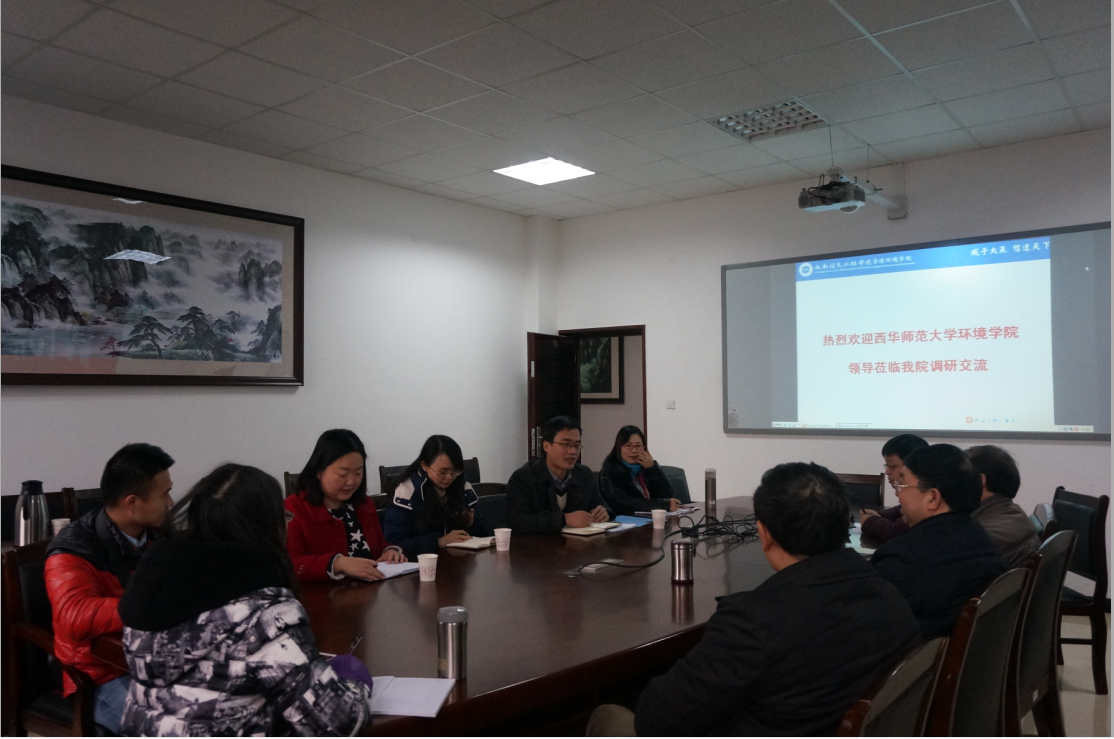 【本网讯】1月19日上午,西华师范大学环境学院一行到资源环境学院交流,交流会在资环楼221会议室召开。西华师范大学环境学院一行五人,资源环境学院院长、副院长、环境工程教研室主任、环境科学教研室主任及教学办公室主任参加了此次会议。会议由资源环境学院院长叶芝祥主持。