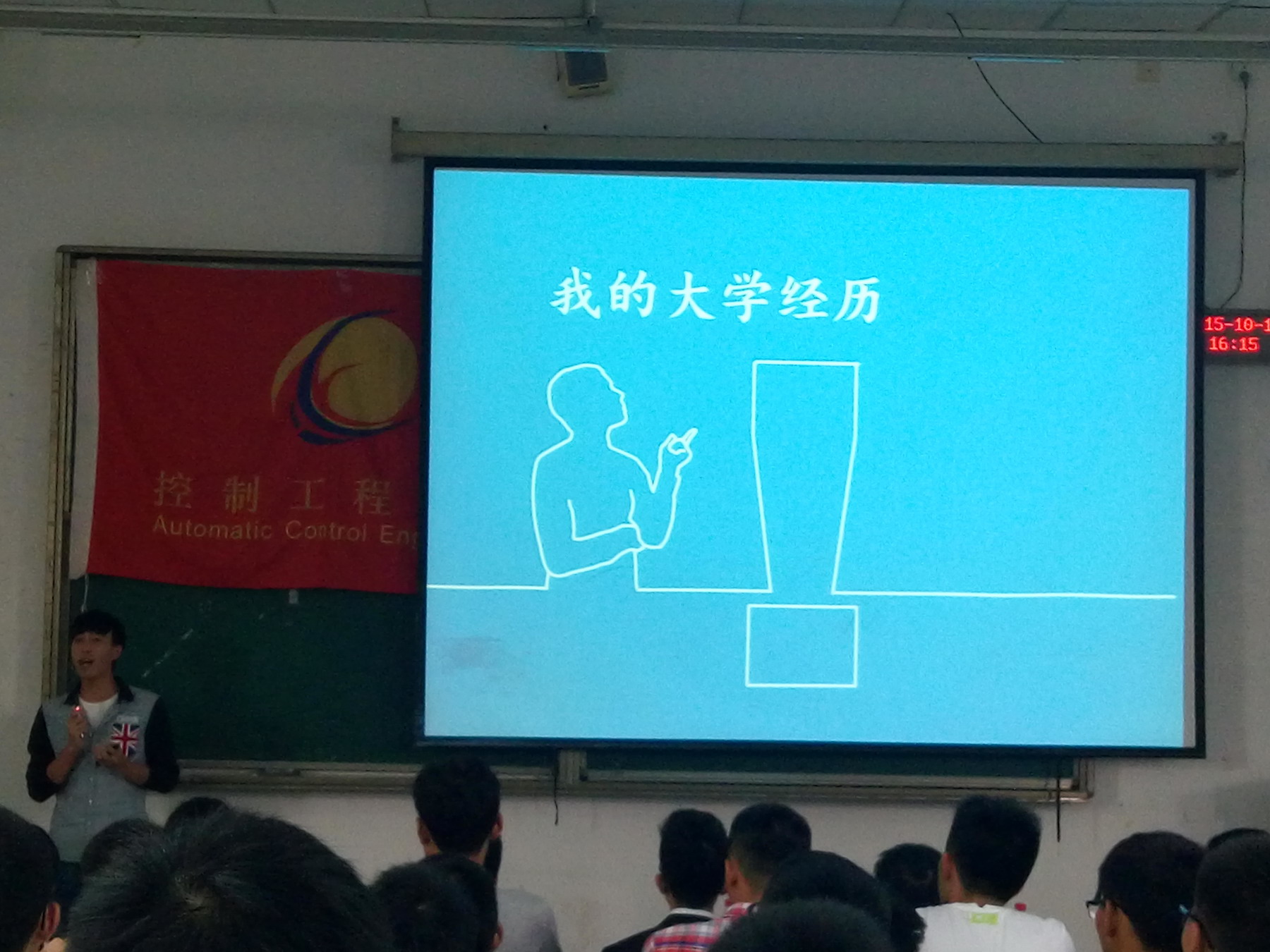 【本网讯】10月16日下午,由控制控制工程学院分团委主办的控制工程学院15级新老生见面会在4313教室举行,分团委书记田晓旭、15级辅导员文丹丹,四位优秀学长代表肖翔、叶盈群、易云浩、代杨仲以及部分15级新生参加了此次见面会。