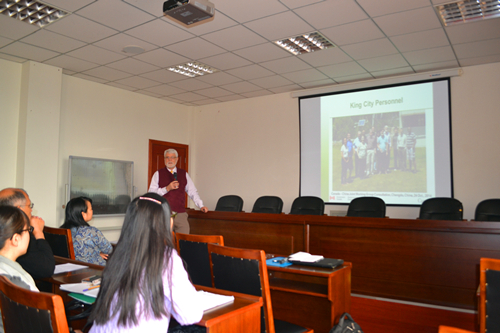 [本网讯]10月24日上午,应我院电子工程学院(大气探测学院)邀请,加拿大环境部专家David Hudak博士在我院气象楼215会议室为电子工程学院和大气科学学院师生作了“Quantitative Precipitation Estimation with Dual Polarization Radars(双偏振雷达定量降水估测)”和“Validation of Dual Polarization Radar Products(双偏振雷达产品校验)”两个专题报告。Hudak博士结合加拿大环境部大气科学研究相关工作介绍了雷达定量降水估测的方法、零度层亮带识别算法、偏振雷达测量降水的产品对比验证以及加拿大在偏振雷达研究、应用等领域的进展,并与我院师生进行了热烈的互动交流。