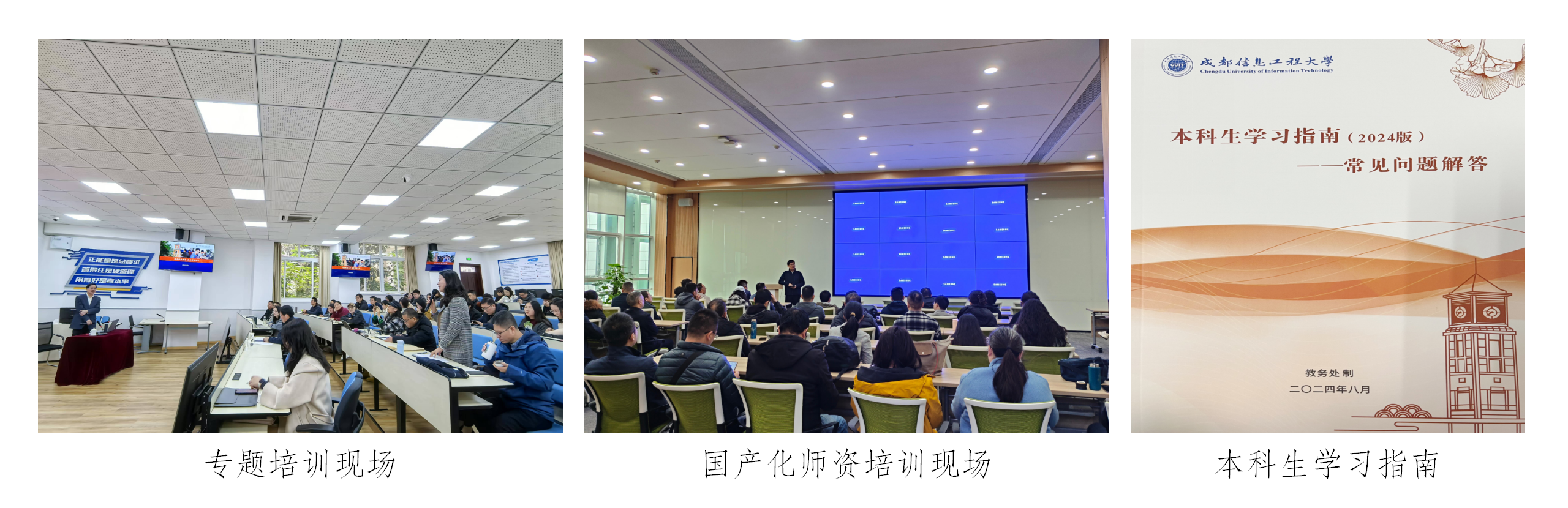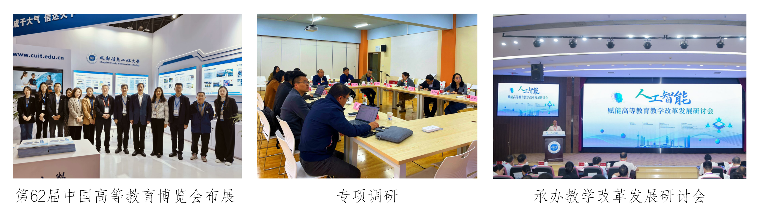 立足本职,实干担当:“成信教务”以深化教育改革为抓手,提升教育教学质量和三全育人实效。推进教育教学数字化转型,建强教学核心要素,深化人工智能与教育教学融合,优化实践能力培养体系。获批省级“十四五”规划教材9部,8部获推申报国家级,获批数量在省属高校中位列第四。获批省级应用型产教融合品牌教材1种。申请项目争取到国家重大科研攻关项目100万经费资助。突破性承办5项省教厅主办的大学生学科竞赛,牵头获批4000万四川省第三批产教深度融合改革试点项目。