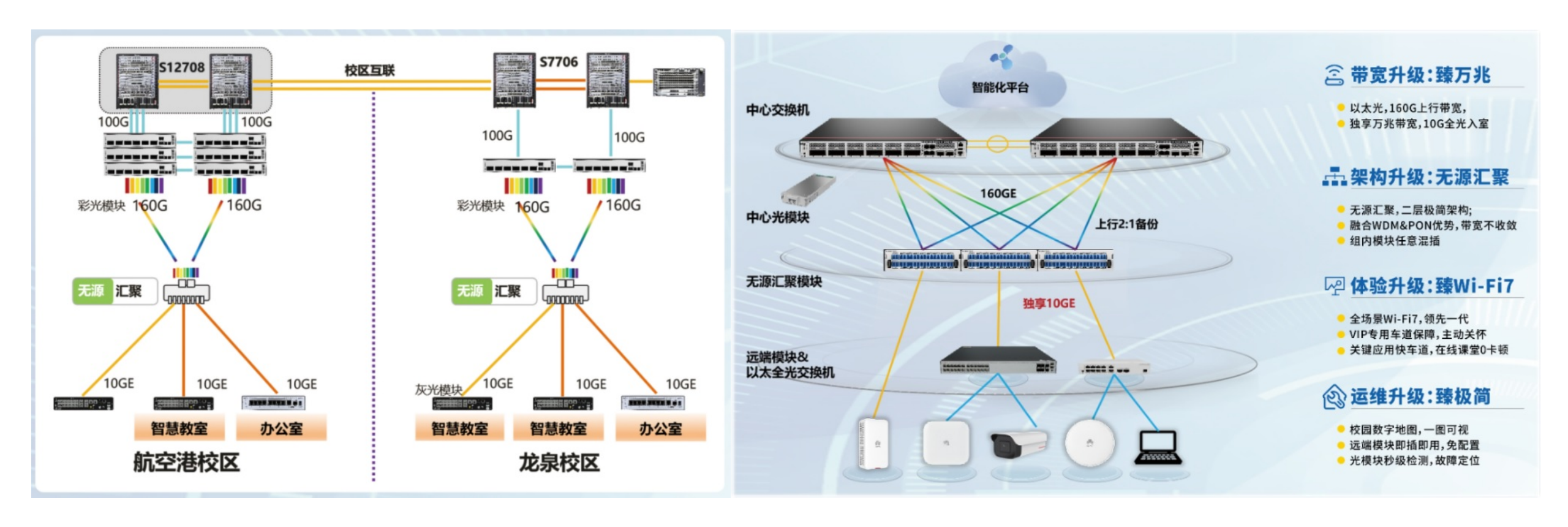 两校区教室建立了基于大带宽网络架构下的高速直录播观看、多模态资源上传下载、在线教学等应用,实现了常态化录播全覆盖应用提升资源采集、建课备课、智能调用等应用效率,构建了多类型、多模态线上线下教学新空间,适应了随时随地的泛在化、碎片化学习方式转变,有效推动了学生从被动学习变为主动学习,为提升数智化教学治理能力奠定了坚实的应用环境基础。