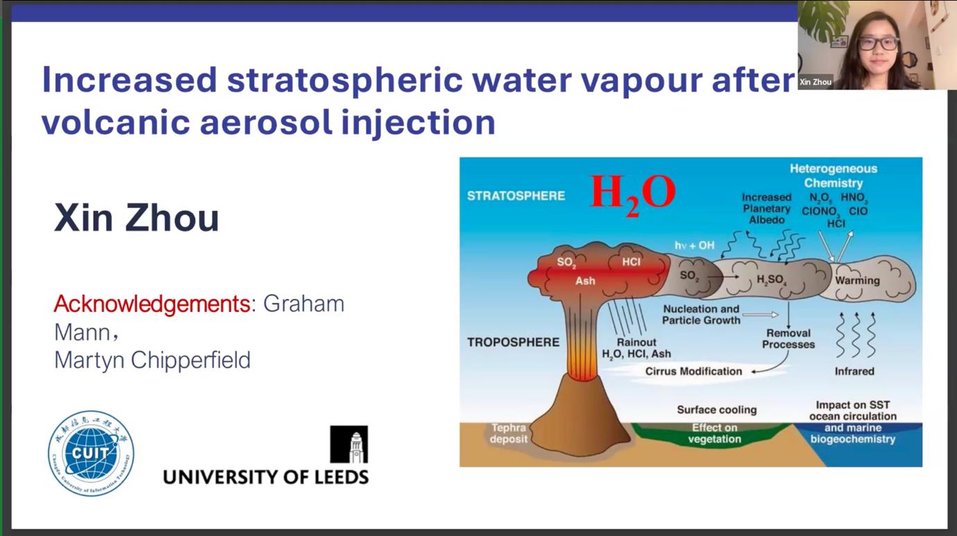 近日,环球官方大气科学学院教师周欣副教授应邀参加了“Stratospheric Aerosol Injection (SAI) Workshop”,并作题为《Increased stratospheric water vapour after volcanic aerosol injection》的学术报告。