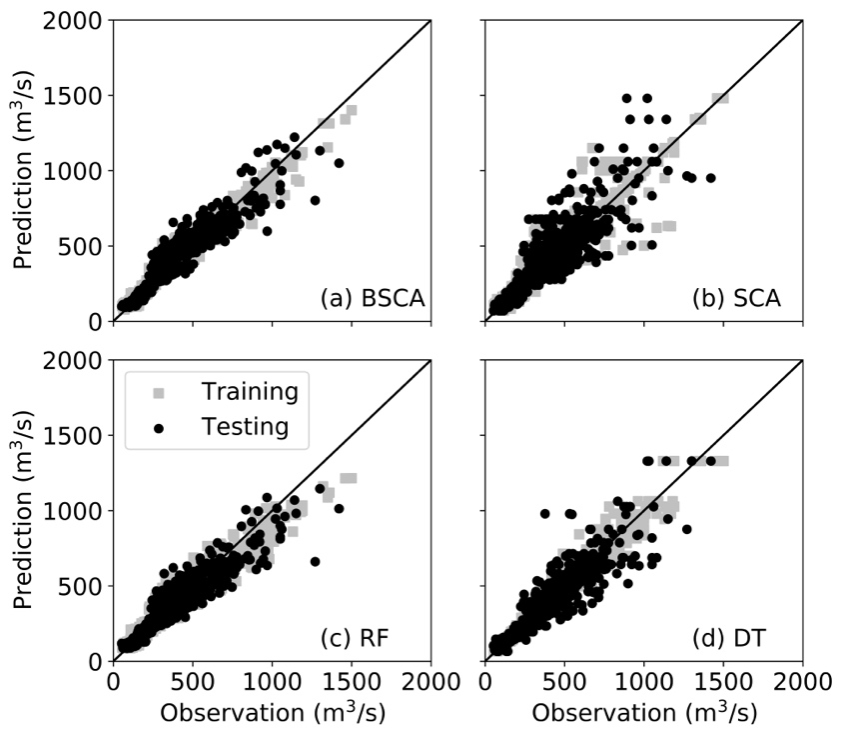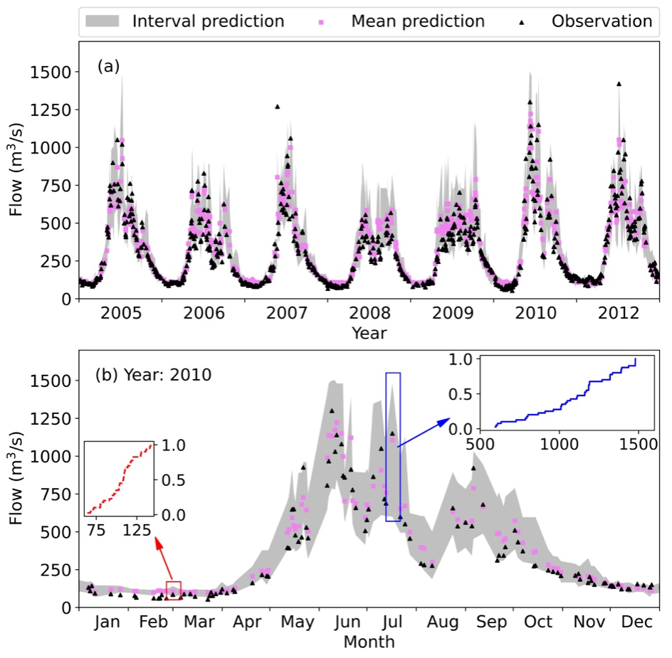 【本网讯】近期我校管理学院张茜茜以环球官方为第一单位,在地球科学领域公认的国际顶级期刊《Journal of Hydrology》(中科院一区,IF=6.4)上发表题目为“Bagged stepwise cluster analysis for probabilistic river flow prediction”的论文。该文章针对河水的径流预测提出了一种基于传统SCA模型与bagging技术相结合的新型ensemble模型,即BSCA模型,克服了传统SCA模型在数据稀疏区域(例如:径流极值)预测不准确的问题并提升了整体的预测准确度。此外,BSCA还可以通过结合probabilisticprediction的方法来量化径流预测值的不确定性,进而指出径流极值的风险大小。本文提出的新型模型展示出较高的径流预测准确度及量化径流极值风险的能力,说明它在未来的洪水控制和水资源管理中具备巨大的发展和实践潜力。
