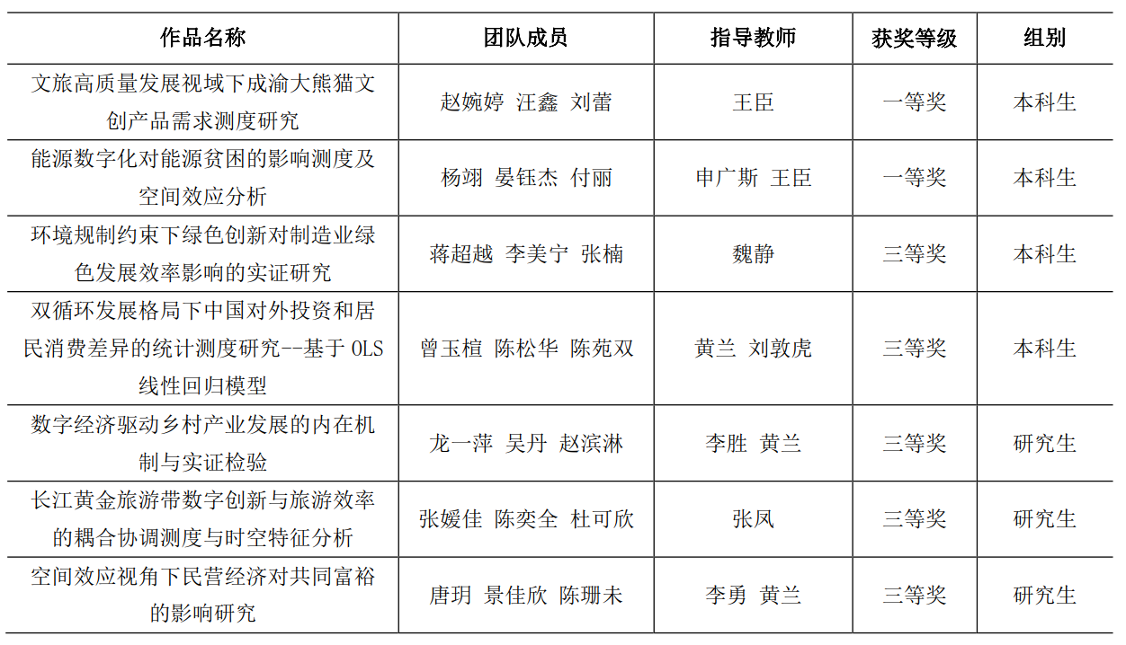 【本网讯】8月21-23日,2023年(第九届)全国大学生统计建模大赛全国总决赛在浙江财经大学圆满落幕。本次大赛由中国统计教育学会、教育部高等学校统计学类专业教学指导委员会和全国应用统计专业学位研究生教育指导委员会联合主办,浙江财经大学承办,中国政府统计研究中心协办。我校师生在大赛中喜获佳绩,斩获全国一等奖2项、三等奖5项,除此以外我校还获得省级一等奖9项、二等奖15项、三等奖14项的好成绩。获全国赛奖项队伍信息如下: