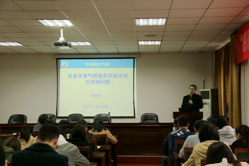 【本网讯】11月26日上午,中国科学院大气物理研究所朱江、孙建奇、王立志研究员应大气科学学院和科技处邀请,在气象楼分别作题为《复合大气污染资料同化问题》、《东亚冬季气候变异机制及有关预测问题》和《气候科技成果转化》的学术报告。本次报告由学校党委书记周激流主持,大气科学学院师生积极参加。