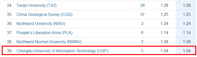【本网讯】根据最新自然指数报道(统计时间为:2017-02-01~2018-01-31),我校在“地球与环境科学”学科领域排名全球第521位(全球2154所高校和科研机构上榜),在国内高校和科研机构中排名第39位(全国158所高校和科研机构上榜)。