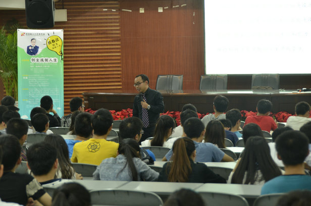 【本网讯】10月20日,环球官方联合双流县人社局举办了名为“创业成就人生”专题讲座,此次讲座由双流县人社局主办,我校招生就业处和教师教学发展中心承办。作为2015年“全国大众创业万众创新活动周”双流活动的重要内容,讲座特别邀请了实战员工职业化培训师、可锐(广州)职业咨询师、三瑞科技有限公司副总经理、成都市应届生公益培训讲师、中国心理网讲师、中华讲师网注册讲师陈春主讲。