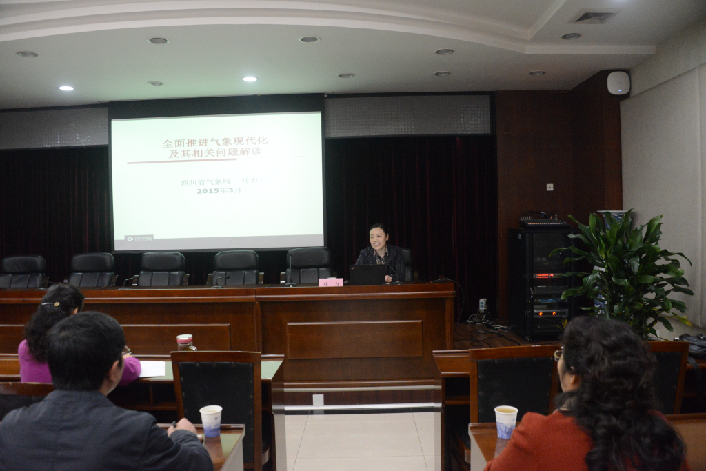 【本网讯】3月27日下午,四川省气象局马力副局长应邀来院校作了《全面推进气象现代化及其相关问题解读》的报告。学院党委副书记敬枫蓉、副院长何建新、大气科学学院、电子工程学院、通信工程学院、资源环境学院、软件工程学院、信息安全学院、管理学院的相关领导、教师和学术100余人参加了报告会,报告会由敬枫蓉主持。