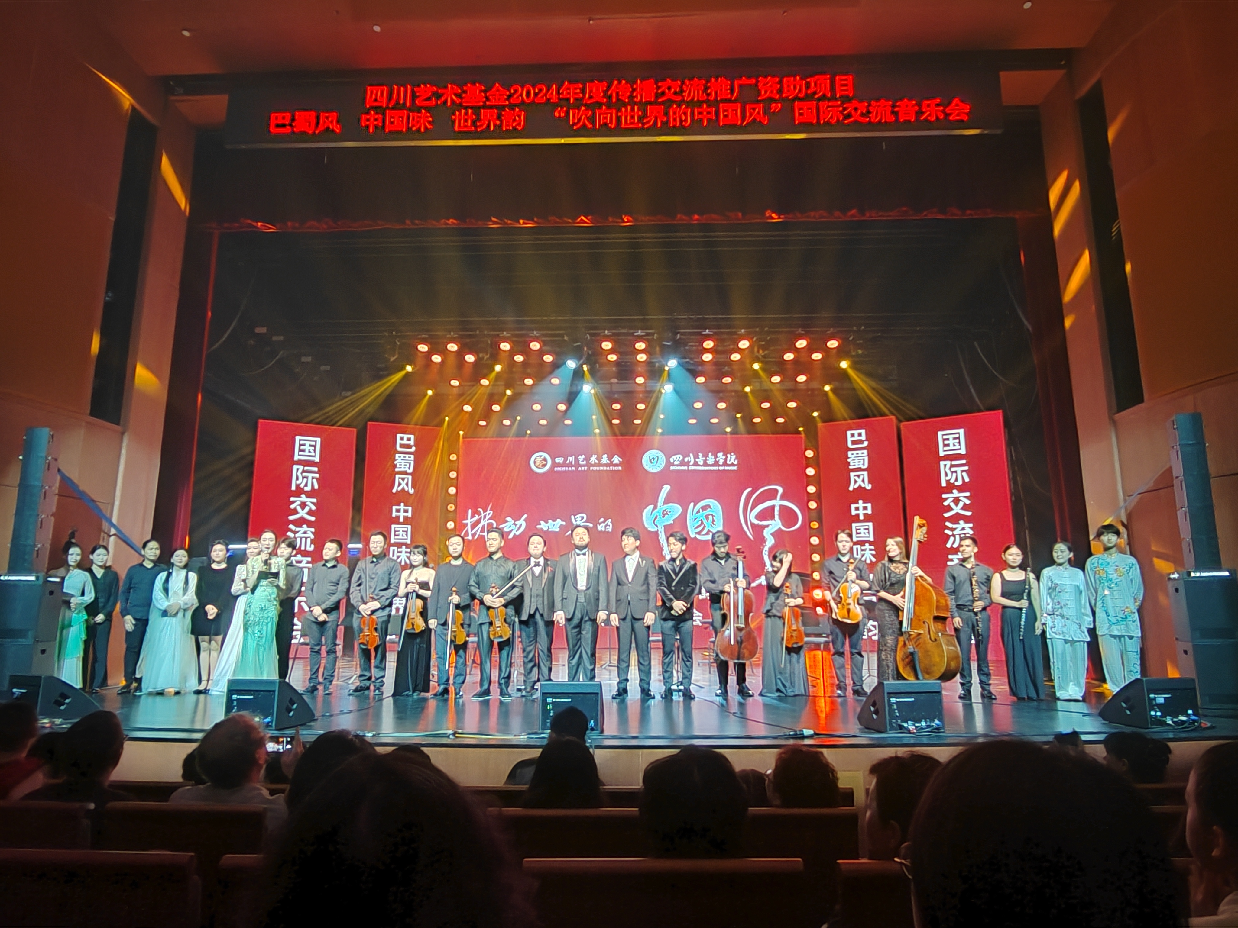 知名学者、日本伊丽莎白音乐大学博士、四川音乐学院王文教授担任此次音乐会总策划,著名菲律宾籍吉他演奏家、四川音乐学院吉他专业外籍教授、硕士研究生导师、“天府友谊奖”获得者Joseph Perez Mirandilla担任音乐会艺术总监,来自中国、菲律宾、美国、土耳其、韩国、委内瑞拉的19位音乐家齐聚一堂,以非凡的才华与激情,将世界音乐元素融入《太阳出来喜洋洋》《茉莉花》《静夜思》等世界人民耳熟能详的“中国风”音乐作品,创造出既熟悉又新颖的艺术体验。音乐会巧妙划分为“巴蜀风”“中国味”与“世界韵”三大篇章,每一篇章都如诗如画,既展现了中国文化的博大精深,又体现了世界文化的和谐共生。在场的每一位听众,无不沉醉其中,掌声雷动,赞不绝口。