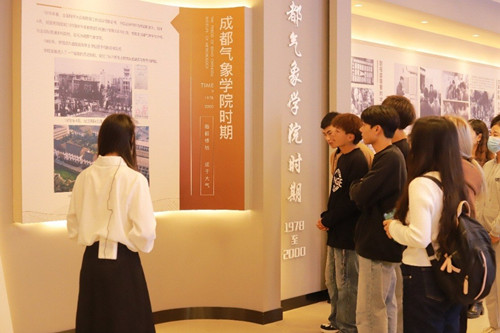 进入校史馆,同学们在解说员的带领下,看着一张张充满历史感的照片,深刻了解了学校的发展历程。学校自1951年创建以来,在历届领导的带领下从艰苦创业时期,几经坎坷,上下求索,一直努力,直至学校加速实现发展目标。到现在,学校是国家中西部基础能力建设工程高校、国家首批“卓越工程师教育培养计划”试点院校、四川省首批“一流学科”建设高校、四川省新增博士学位授予单位优先培育高校,是国际CDIO组织、中国气象人才培养联盟、成渝地区双城经济圈高校联盟正式成员。
