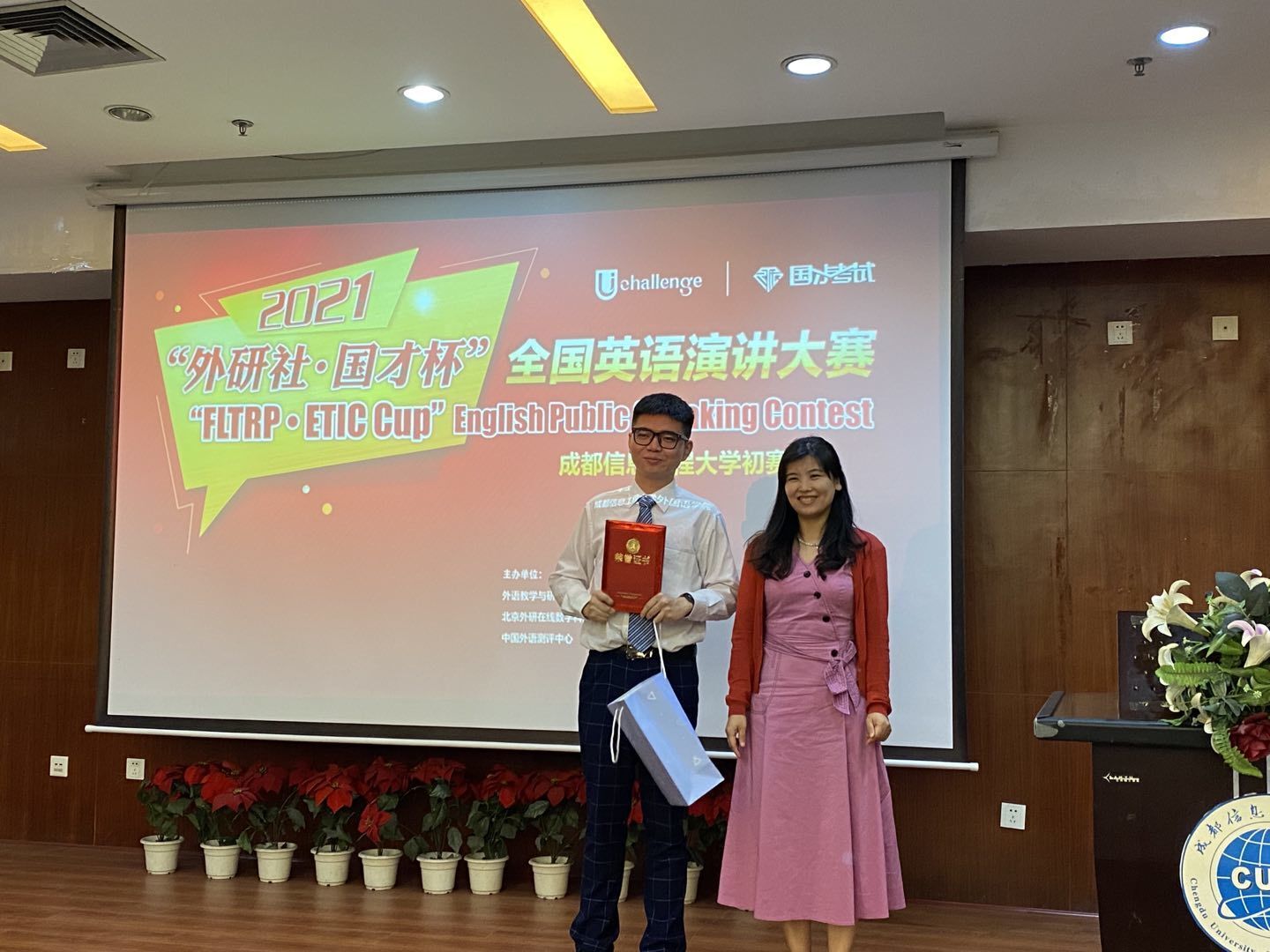 经过近两个小时的激烈比拼,最终外国语学院罗龙雨同学获得冠军,他将代表我校参加于11月6日在西南财经大学举办的四川省大学生英语挑战赛演讲大赛。