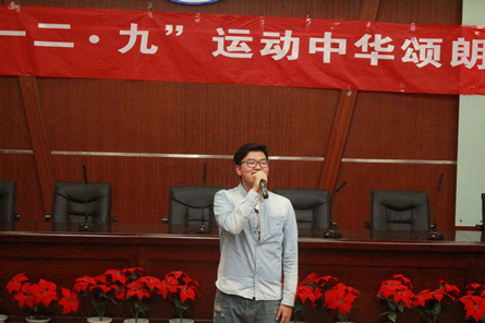 【本网讯】12月7日,学校第八届大学生文化艺术节纪念“一二·九”运动——“中华颂”经典朗诵大赛决赛在龙泉校区学术报告厅成功举行。本次活动由校团委主办,文化艺术学院承办,学生社团联合会协办。学生处、校团委负责人,部分学院党总支书记、大赛评委经过层层海选产生的12名优秀选手等师生参加了决赛。