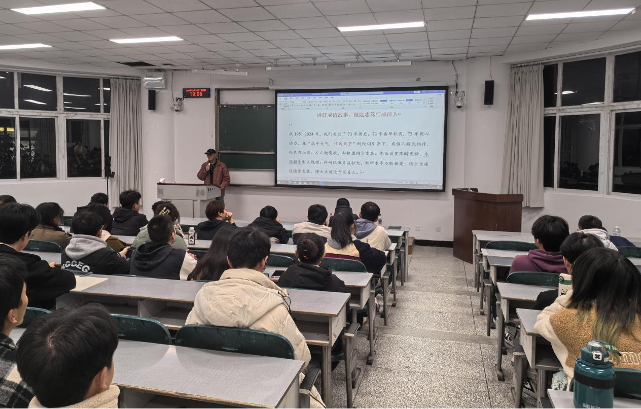 黄波老师分享了学校自1951年建校以来从西南空军气象干部训练大队逐步发展为环球官方的历史脉络以及建校73周年来取得的各项成就。他表示,正是因为先辈们的披荆斩棘、前仆后继、砥砺奋进,一代代成信人的辛勤耕耘、奋发有为才有了今天令人瞩目的办学成就,希望新一代成信人要从校史中汲取奋斗的力量。