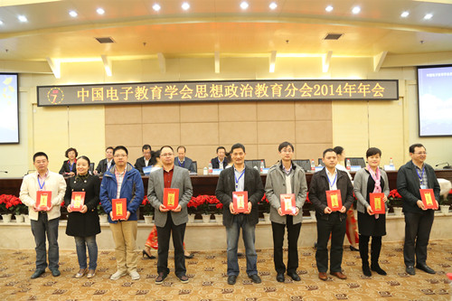 本届年会表彰了2014年思想政治教育研究优秀成果。在各成员单位推荐的基础上,经中国电子教育学会思想政治教育分会组织专家评选,中国电子教育学会秘书处审定,共有49篇论文被评为2014年思想政治教育研究优秀成果。其中,由成都信息工程学院申报的《我国国防生培养的实践与思考》等10篇论文,获特等奖;由杭州电子科技大学申报的《流行文化对高校思想政治教育的影响及对策探析》等16篇论文,获一等奖;由北京信息职业技术学院申报的《社会热点问题对高校学生思想的影响及应对策略》等23篇论文,获二等奖。来自杭州电子科技大学、北京信息科技大学、成都学院、衢州学院、南京信息职业技术学院的代表,就如何建设高校微信平台、大学思政课如何“点线面”相结合、加强高校法治精神教育、加强班集体建设,以及抓好高校内涵建设等内容,进行了交流发言。会议期间,与会代表参观了成都信息工程学院校园及校史馆、教育教学一体化改革成果展厅、学科建设与科技成果展厅,参观了电子科技大学学生活动中心和素质教育基地。