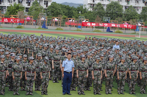 空军某部副司令员、军训团团长熊健代表承训部队作军训动员讲话,希望同学们珍惜机会、刻苦训练、互帮互助,通过训练学习军人的顽强作风、纪律观念和团队精神,并运用于学习生活中,孜孜不倦、勤学苦读,坚定远大理想,创造青春业绩。同时,熊健要求军训教官严格管理、科学施训、文明施训,确保军训工作取得圆满成功。