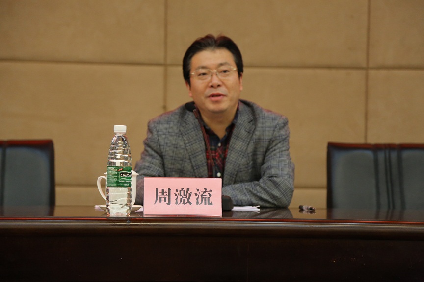 周激流代表全院师生员工向全体在职研究生新同学表示热烈欢迎和祝贺。他向新同学们简要介绍了学院的历史沿革、办学现状及未来展望。他结合自己多年担任硕士和博士研究生导师的经验给予了新同学指导并提出几点要求:第一,希望同学们处理好家庭、工作和学习的关系;第二,希望同学们做好“专业学位”研究生的定位,充分认识了解“从实践中来到实践中去”的专业学位研究生特点;第三,希望同学们在学校期间主动加强与导师的沟通,并充分利用学院现有资源,同时要求导师也要本着负责任的态度从严要求同学。最后,周激流衷心祝愿同学们在学院学习期间学有所成、心情愉快、家庭愉快、工作愉快!