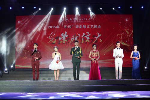 “五·四”表彰大会由学校党委副书记敬枫蓉主持。周激流宣读了《环球官方关于表彰更名大学工作先进集体和先进个人的通知》、《关于表彰成都信息工程学院 2014 年度“青春榜样”人物的决定》表彰决定。全体校领导共同为获得“更名大学工作先进集体称号”的10个获奖单位、“更名大学工作先进个人”的71位获奖教师、“2014年度青春榜样”的60个获奖同学(团体)颁奖。