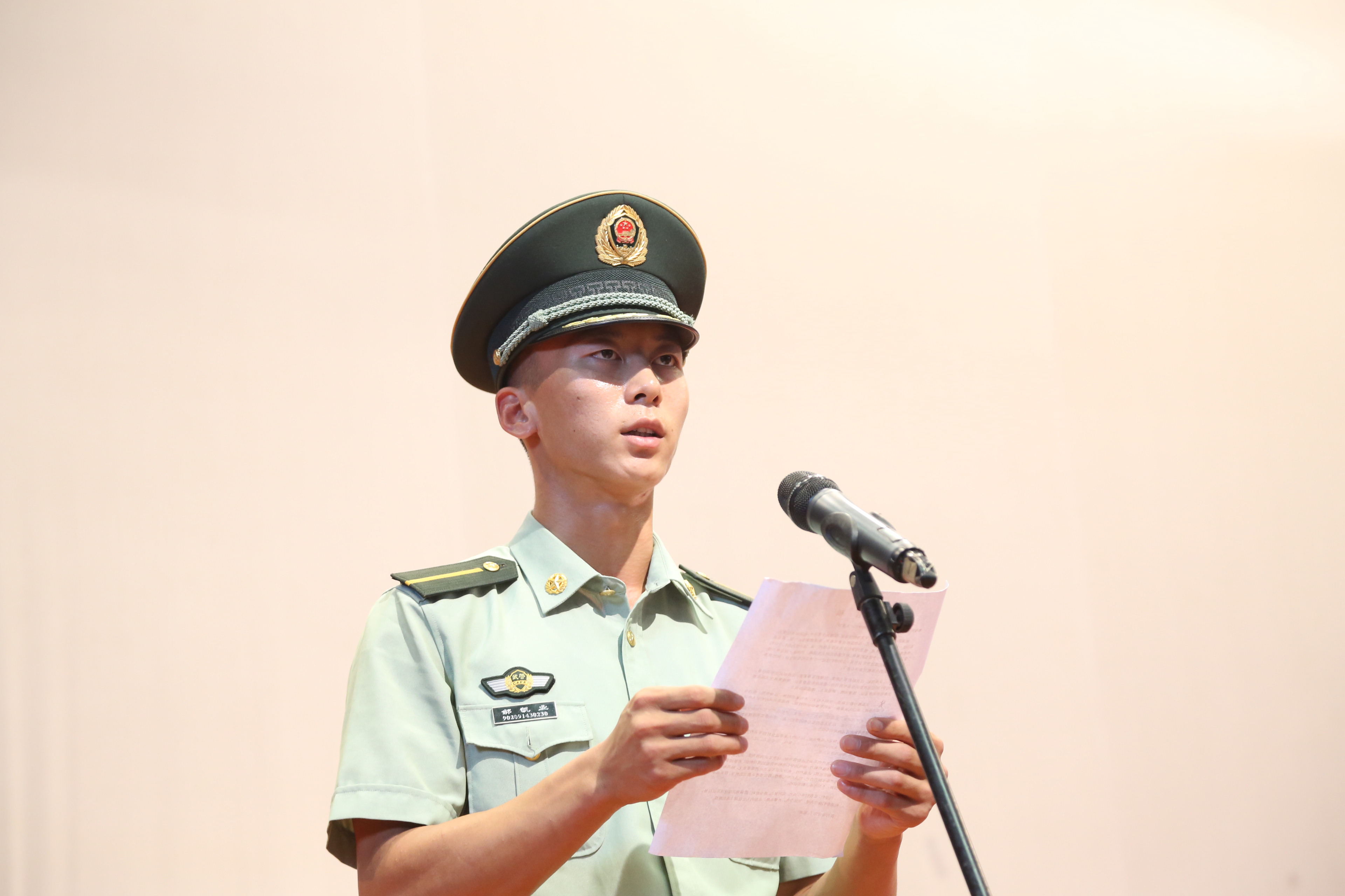 军训教官代表表示:全体军训教官将以身作则,认真履行职责,以良好的军人形象带领大家,以过硬的军事本领引导大家,科学施训,灵活组训,关心爱护全体同学,带领大家愉快的完成此次军训任务。
