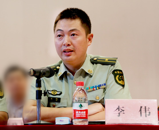 武警警官学院军训团副团长李伟少校宣读军训团营以上干部名单。