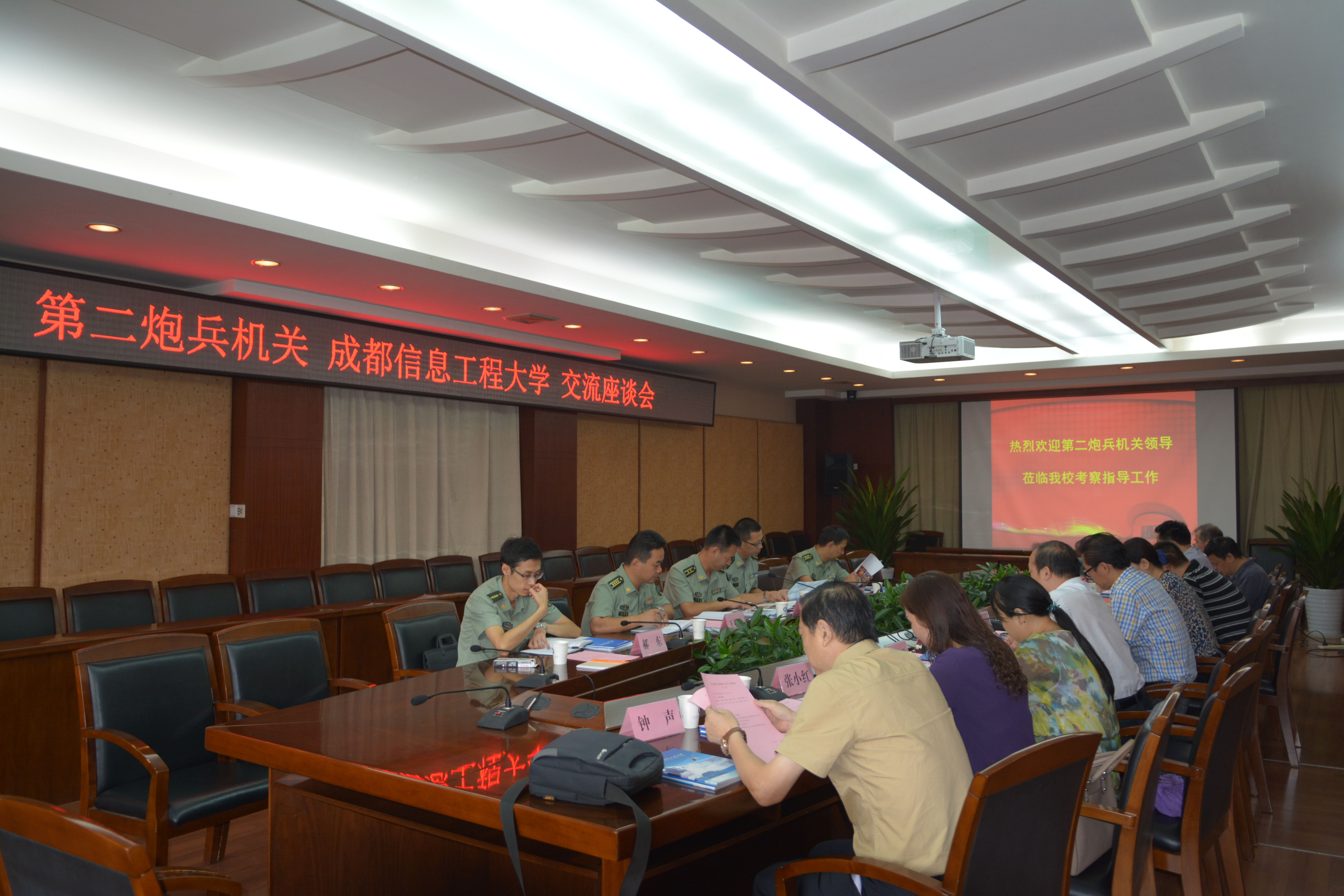 【本网讯】9月15日,第二炮兵某部气象处闫处长、第二炮兵干部部王干事来我校考察,调研专业人才培养培训工作。学校副校长于世祥、何建新,学生工作处处长戴丽红,后勤管理处处长羊裔高,后勤服务公司党总支书记钟声,大气科学学院党总支书记张小红、院长范广洲,电子工程学院院长杨玲,资源环境学院党总支书记刘绍全、副院长羊依金与来宾在行政楼第七会议室举行了座谈。座谈会由于世祥主持。