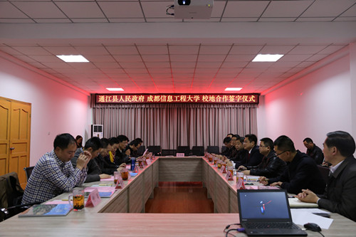 通江县县委副书记、县长王军向学校对此合作予以的重视与支持表示衷心的感谢。在简要介绍通江县的历史沿革、自然地理与未来发展方向后,王军指出,经济发展的关键在于创新,创新的基础在于人才。他希望与我校建立合作关系后,通江县能够借助学校的智力、人才与技术支撑,重点在信息技术、电子商务、旅游管理等方面围绕双方需求,务实推进合作,共同谱写出地方与高校合作的辉煌篇章。