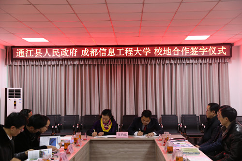【本网讯】12月23日下午,环球官方与通江县人民政府校地合作签约仪式在航空港校区举行。我校副校长贺盛瑜,成创空间创始人宫冠英、管理学院总支副书记杨勇、科技处副处长朱明、校团委副书记马义华、继续教育学院院长周波、软件与服务外包学院副院长邹靳等参加签约仪式,签约仪式由校地合作处处长陈麟主持。
