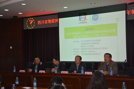李俊华对物联网产业情况及政策进行了剖析;彭舰作了物联网人才专委会2015年工作总结及2016年工作计划的报告;刘艳梅对成都市校院地协同创新和成果转化政策进行了介绍。参会的部分企业代表就科技成果孵化、创业政策扶持、企业人才需求、校企合作等内容进行了分享。最后,物联网人才专委会还聘任了一些优秀创业导师,并对物联网人才实习基地进行了授牌。